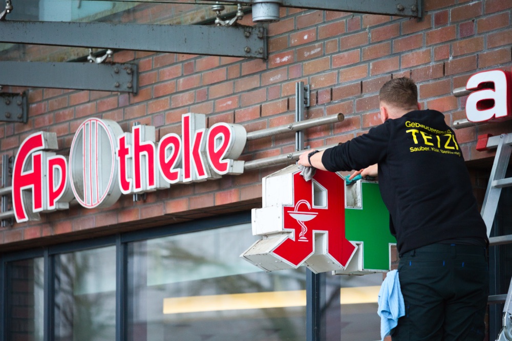 Bei diesem Projekt habe ich die Außenflächen der Apotheke am Kaufhof in Lübeck, Marlistraße 103 professionell gereinigt. Ziel war es, die sichtbare Leuchtschrift, das Logo sowie die Fensterflächen gründlich zu säubern und einen gepflegten Eindruck für Kunden zu schaffen.